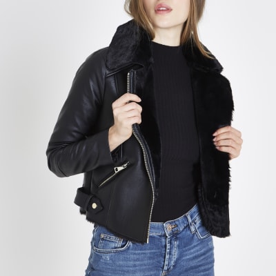 Related : View Faux Leather Biker Jacket With Faux Shearling Lining Images.