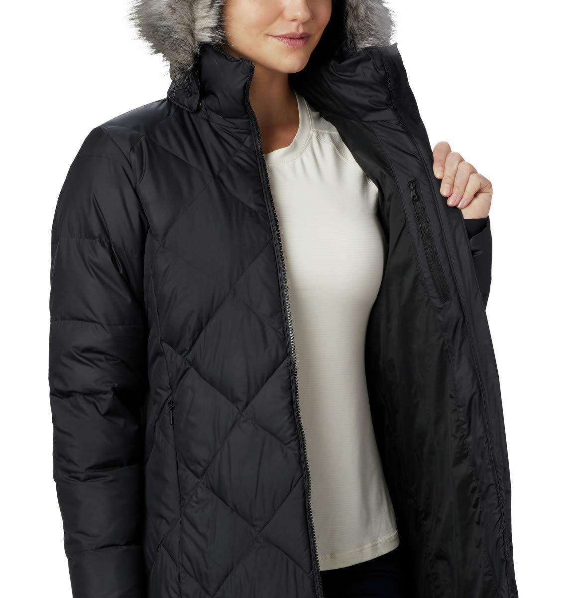 Women's white out™ ii jacket. Columbia women icy heights ii mid length down jacket black cherry large fur hood. The icy heights ii down winter jacket leverages the weight advantage and warmth that only down fill can provide. Imbottitura in piuma con densità 450 cuin, certificazione rds.